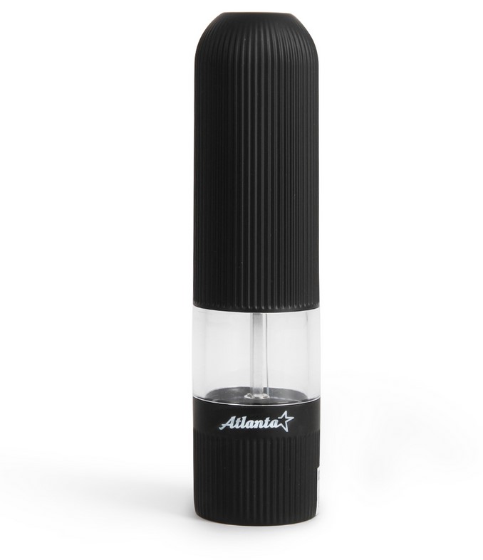 Мельница электрическая для специй Atlanta, работа от 6хАА батареек. Долговечный керамический механизм, корпус из ABS-пластика. Регулировка степени помола. Стильный минималистичный дизайн.