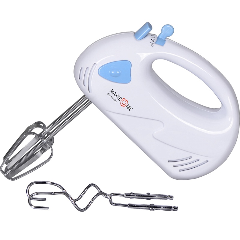2 вида насадок (крюки для замешивания теста и венчик для взбивания яиц и крема)
