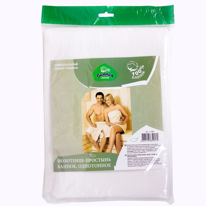 Полотенце-простынь банное вафельное однотонное 11-550 (20/1) Банная Линия в Кирове