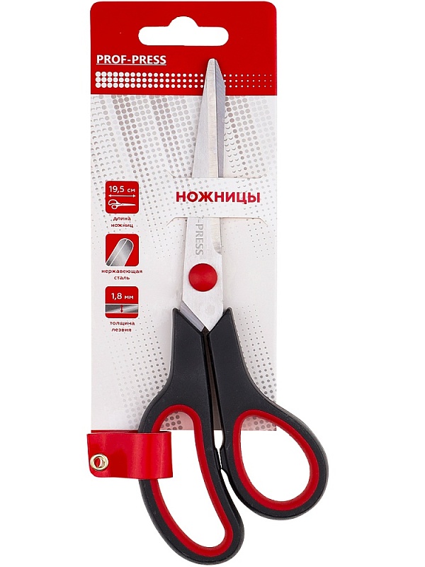 Ножницы канцелярские 19,5 см, двухцв. прорезин. кольца, в карт. блистере в Кирове