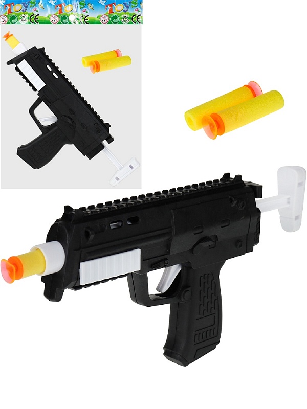 Пистолет с мягкими патронами. Размер: 15,5 см. Софт-патроны идут в комплекте.