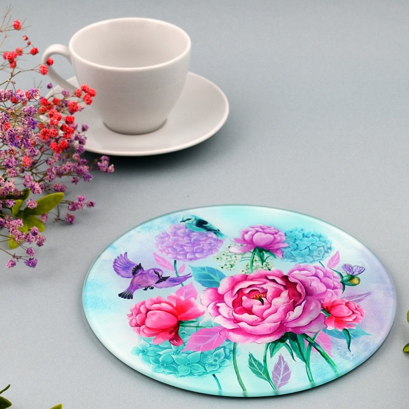 Доска разделочная Подставка под горячее Пионы и птички VL48-154 (12/1)