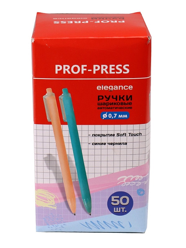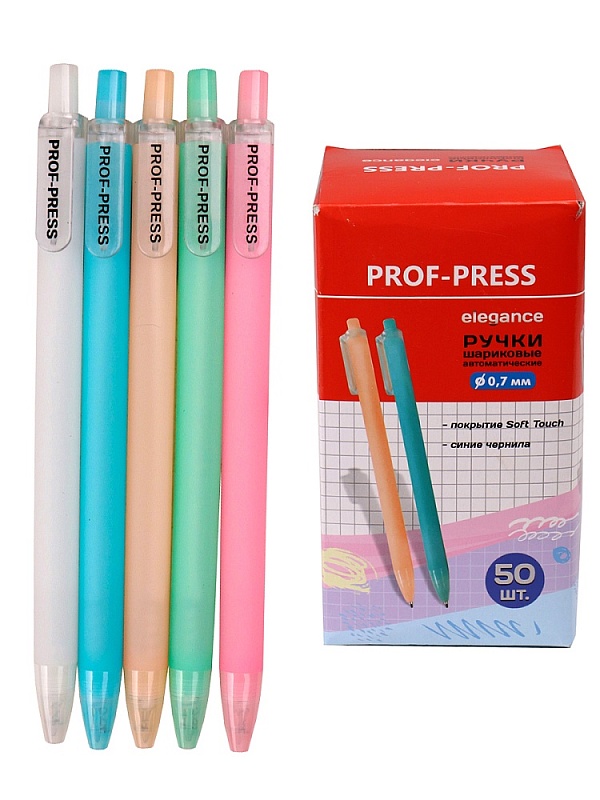 Шариковая ручка с автоматической подачей стержня синего цвета. Ручка пишет легко и быстро, не требуя нажима. Диаметр пишущего узла 0,7мм.