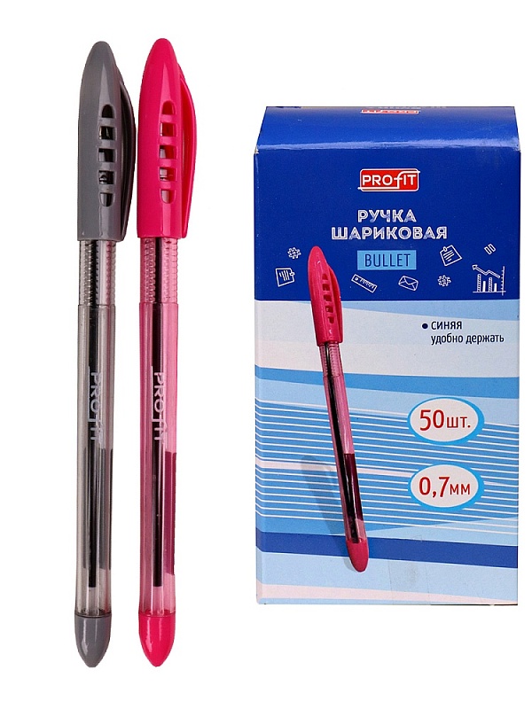 Ручка шариковая, пластик. грип "BULLET" СИНЯЯ d=0,7мм в Кирове