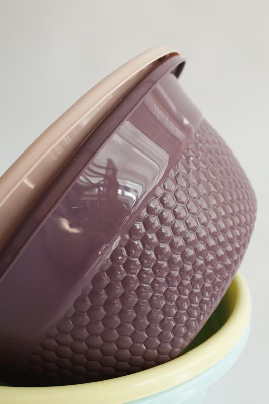 Многофункциональная миска 4 л. отлично подойдет для любых потребностей: для приготовления салатов, фарша, теста, маринадов и прочих блюд, и даже для горячего; для повседневного хранения; для организации перекуса «с собой» ввиду легкости материала. Миски удобно ложатся в руку благодаря округлой форме. Внешняя сторона корпуса выполнена со специальным резным узором, напоминающий пчелиные соты, при этом миска не скользит в руках и дарит приятные тактильные ощущения. Изготовлены из безопасного пищевого пластика, который не содержит бисфенол А. Легко моются и прослужат долгие годы благодаря долговечности материала. Уникальная широкая линия включает 3 литража: 1 л./2,1 л./3,2 л. В упаковке представлены различные цветовые исполнения данного изделия.