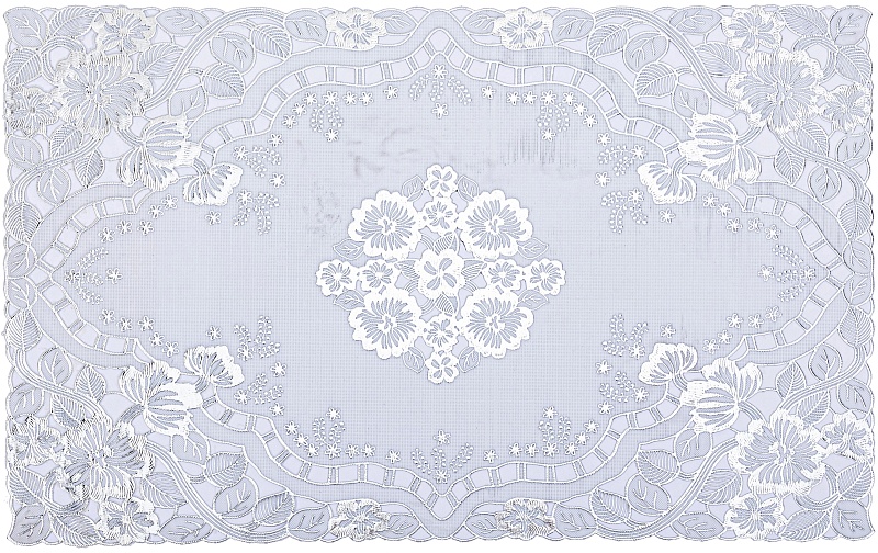 Салфетка для стола (30х46 см) кружевная с серебряным напылением Лэйс Лайт из ПВХ без основы (6 рисунков в ассортименте) удобна в эксплуатации и является хорошим вариантом для практичной хозяйки, ведь она не только защищает стол, но также выполняет декоративную функцию.