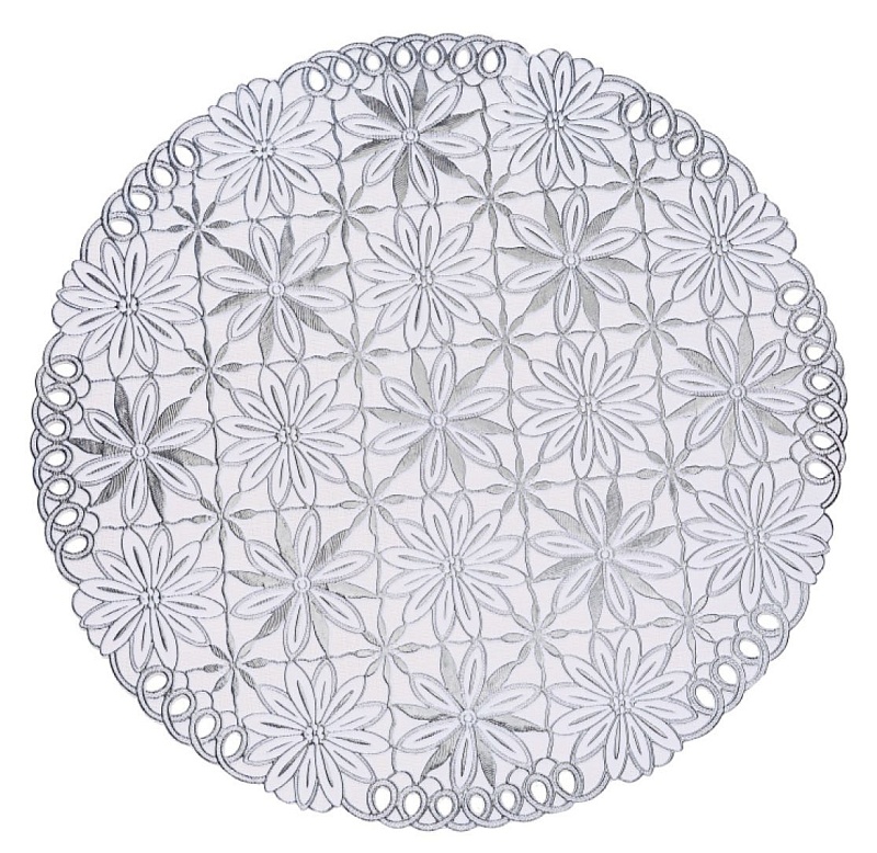 Салфетка для стола (38х38см) кружевная с преламутровым напылением Лэйс Лайт из ПВХ без основы (6 рисунков в ассортименте) удобна в эксплуатации и является хорошим вариантом для практичной хозяйки, ведь она не только защищает стол, но также выполняет декоративную функцию.