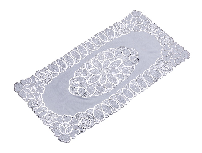 Салфетка для стола (40х84 см) кружевная с перламутровым напылением Лэйс Лайт из ПВХ без основы (6 рисунков в ассортименте) удобна в эксплуатации и является хорошим вариантом для практичной хозяйки, ведь она не только защищает стол, но также выполняет декоративную функцию.
