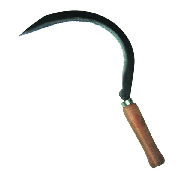 Серп имеет металлическую рабочую часть (лезвие) длиной 350 мм и деревянную ручку, позволяющий надежно держать изделие в руке. Предназначен для скоса небольших участков травы на даче и в огороде.
