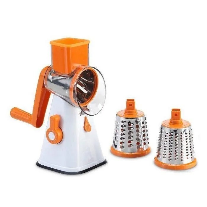 Современная и многофункциональная овощерезка оборудована 3 сменными насадками: Насадка "Зернистый барабан"-подходит для измельчения сыра, орехов, лука и других твердых продуктов, грубое лезвие с большими отверстиями для крупной резки и шинковки-идеально для шинкования капусты и других видов салатов, лезвие с длинными узкими прорезями, идущими наискосок-насадка для приготовления домашних чипсов, салатов, запеченных овощных блюд из картофеля, цукини, огурцов. Не скользит по столу. Основа изделия надежно крепится к любой чистой и сухой поверхности за счет присоски и блокирующего рычажка.