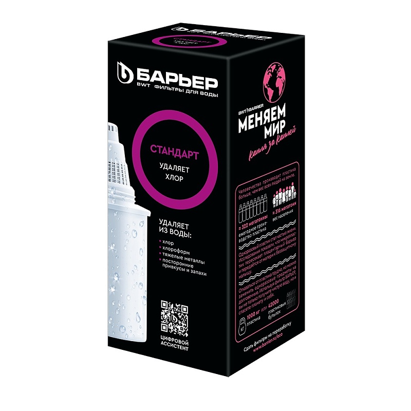 Все кассеты БАРЬЕР подходят ко всем кувшинам БАРЬЕР. Одна кассета способна заменить несколько сотен пластиковых бутылок.