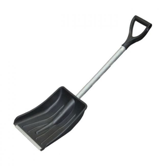 Автомобильная пластмассовая лопата №7 имеет ковш с габаритами 365х275 мм, алюминиевую планку, металлический черенок и V-ручку.