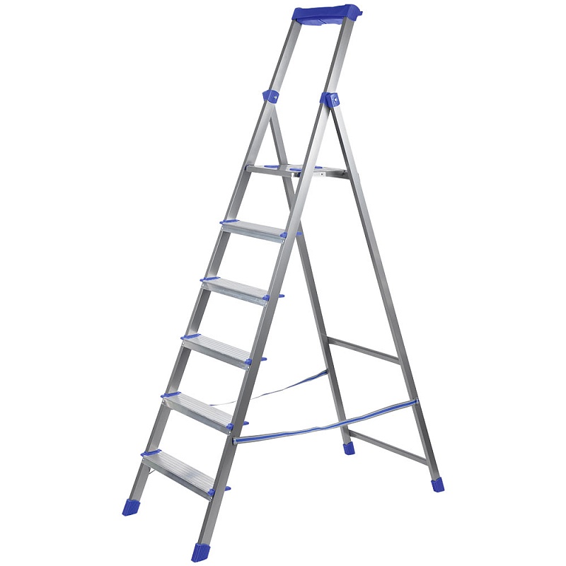Комбинированная стремянка с габаритами (в раскрытом виде) 550х1170х1880 мм имеет 6 алюминиевых широких ступеней 82 мм. Рабочая высота — 3490 мм. Есть многофункциональный лоток для инструментов и страховочная стяжка из прочной ленты. Особенности: высокая дуга безопасности, комбинация материалов — ступени выполнены из алюминия, профиль из стали, а наконечники из пластмассы. Максимальная нагрузка до 150 кг.