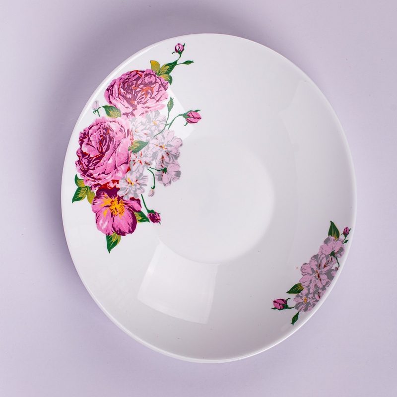 Тарелка овальная  обеденная   с рисунком лавандовых пионов