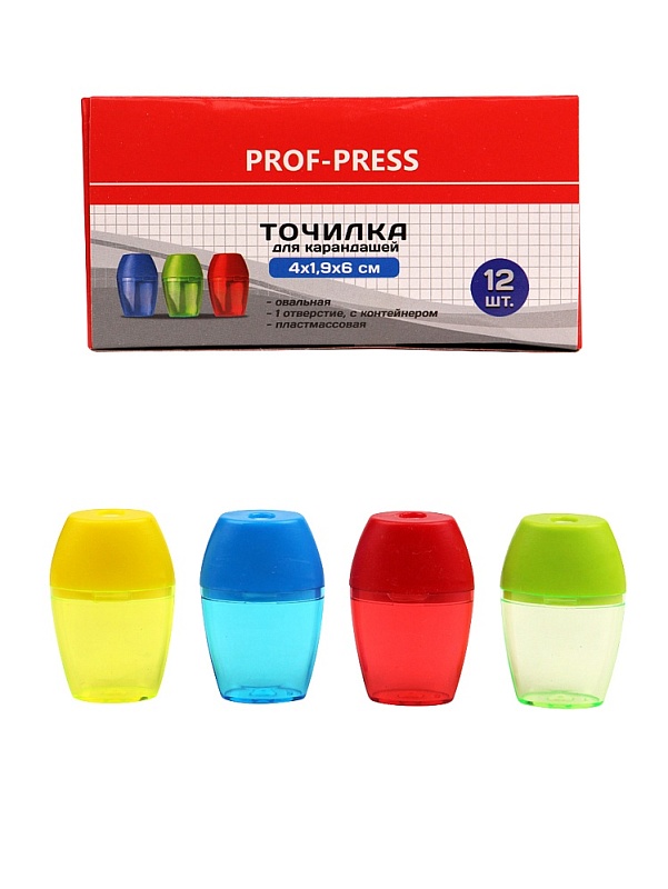 Точилка — маленький незаменимый помощник на каждом столе. Легкая и удобная точилка от компании "Проф-Пресс" выполнена из цветного пластика с контейнером, овальной формы, имеет 1 отверстие. Упаковка: картонная коробка.
