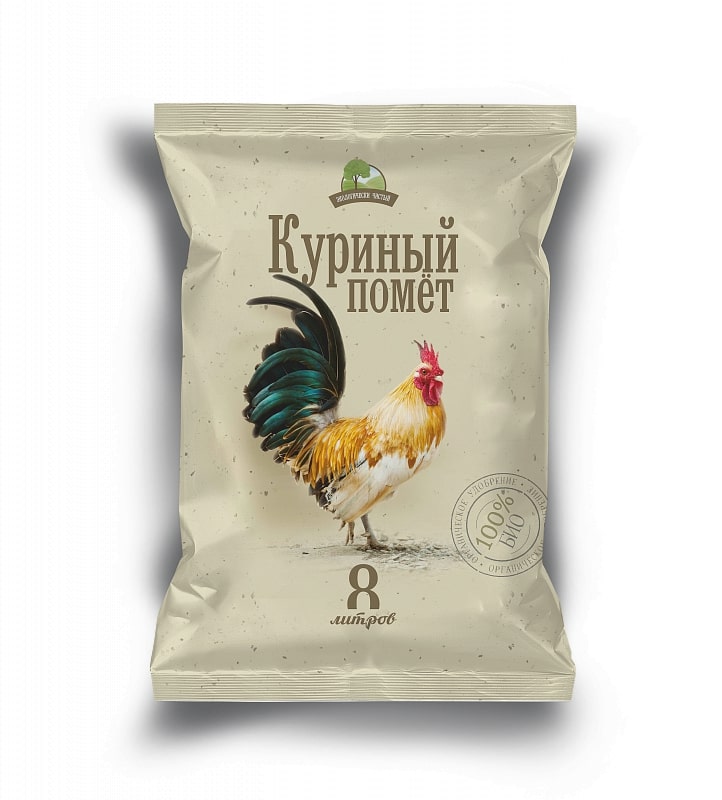 Экологически чистый, нетоксичный куриный помёт. Применяется не только для подкормки растений, но и для заправки посадочных ям, для ускорения созревания компоста, для отпугивания вредителей, таких как медведка. Он улучшает структуру земли и ее проницаемость. Одинаково эффективен на всех видах почвы.