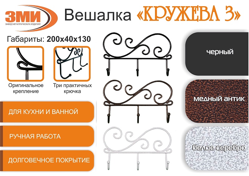 Вешалка "Кружева 3" черный ВН 275 Ч (10) в Кирове