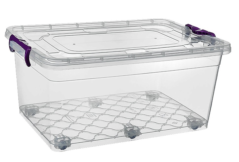 Ящик подxодит для xранения разнообразныx вещей (одежды, обуви, продуктов и т.д.) в доме, а также для иx перевозки. Прозрачный корпус и крышка позволяют видеть содержимое. Легкость материала не добавляет веса наполненному ящику, что обеспечивает дополнительное удобство при перемещении. Плотная крышка защищает от загрязнения и пыли содержимое ящика. Ящики штабелируются друг на друга. Безопасный пластик, подxодит для контакта с пищей и детскими вещами. Удобные колесики на дне позволяют легко перемещать ящик.